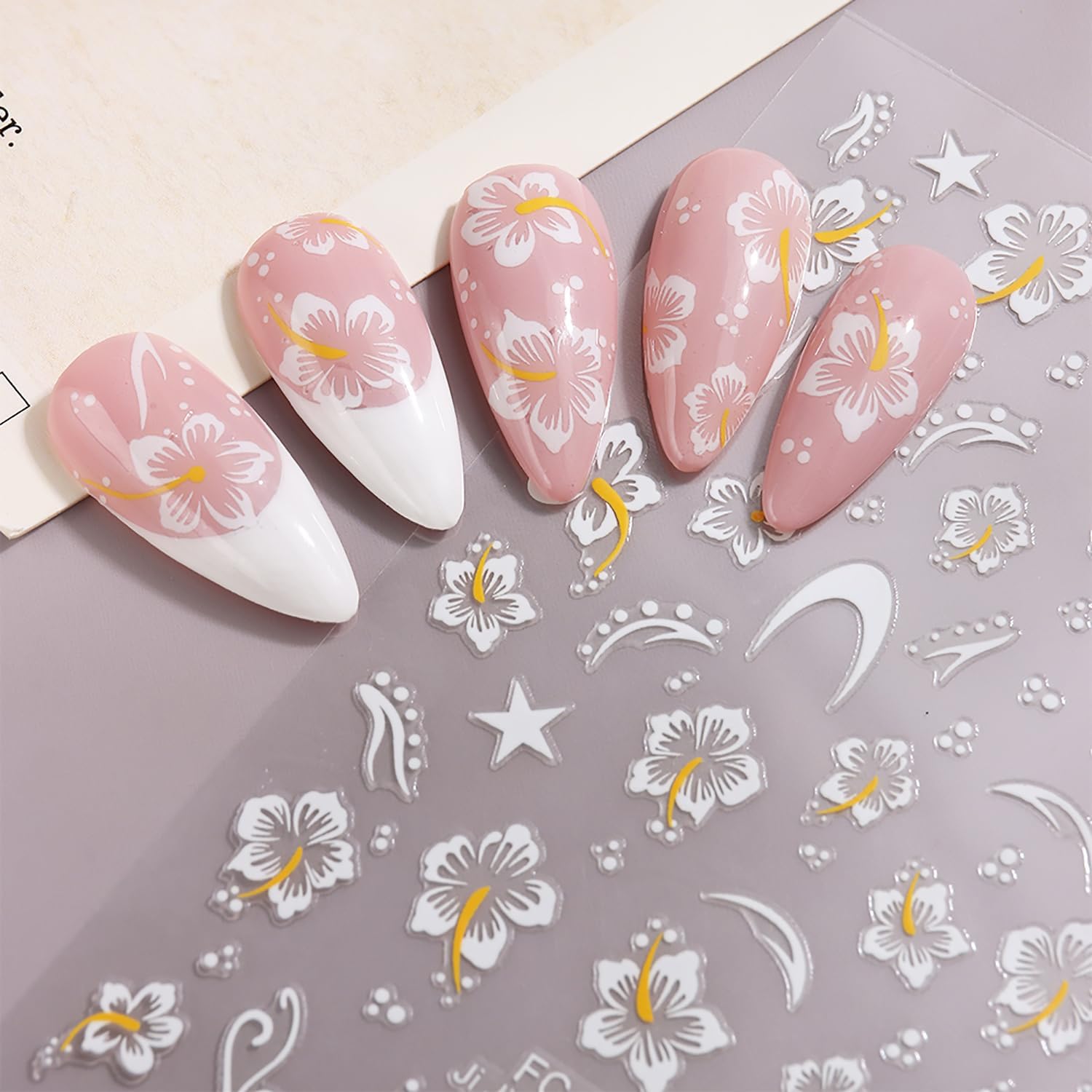 Flower Nail Stickers Fall Nail Decals 6PCS 3D Self-Adhesive White Yellow Blue Orange Floral Nail Design Autumn Nail Art Supplies DIY Acrylic Nail Art Decorations Accessories Flowers Sticker for Women